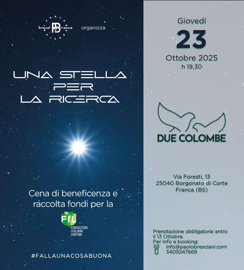 Giovedì 23 ottobre 2025, alle 19.30, torna la serata benefica “Una stella per la ricerca”, un appuntamento speciale dedicato al sostegno delle attività di ricerca scientifica sui linfomi promosse dalla Fondazione Italiana Linfomi.